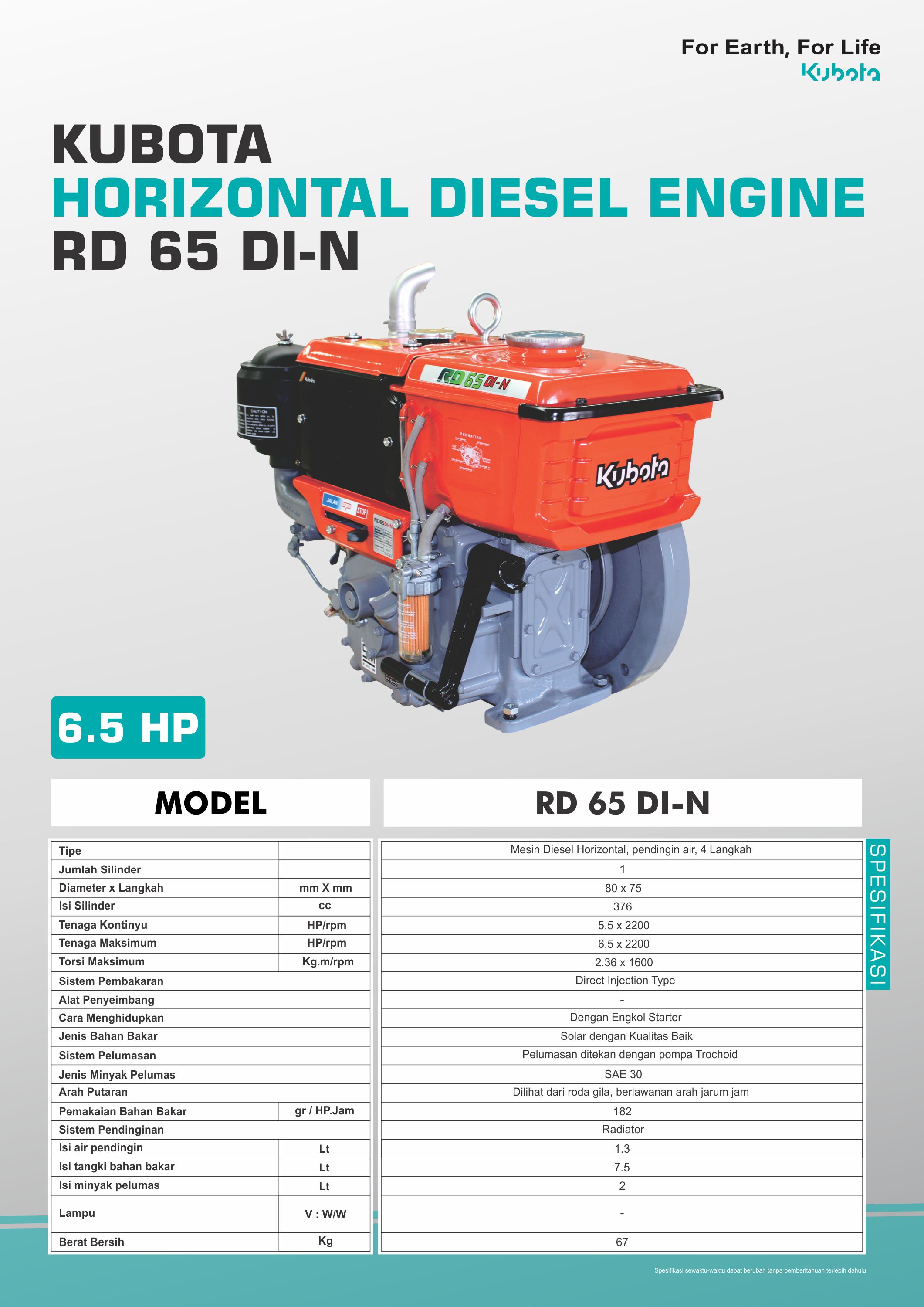 | Sistem Pembakaran | : Direct Injection (Pembakaran Langsung) |
