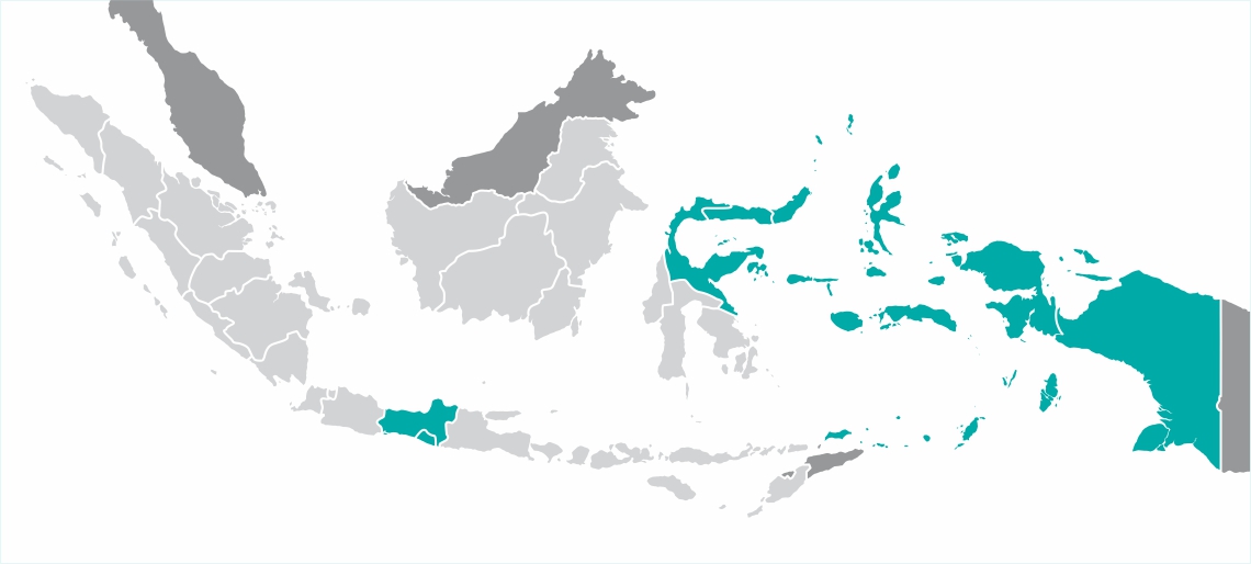 Jawa Tengah, DIY, Sulawesi Utara, Sulawesi Tengah, Gorontalo, Maluku, Papua
